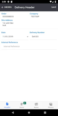 The app allows site deliveries to be booked in using a mobile phone or tablet. Once the details of a delivery have been entered, along with some optional notes and photos, the details are then sent via the web to the Construct database at the customers offices.
