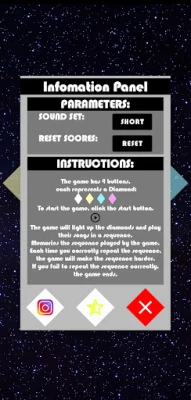 Be alert and memorize which buttons will light up and play a note, and try to repeat it following the sequence given to you. Replay the sequence as it gets longer each time you answer right;and challenge yourself, until your memory allows it no more.