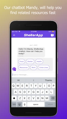 Shelter App is an AI Powered Chatbot that connects at-risk youth to services like Youth Drop-in Centers, Homeless & Run Away Youth Shelters, LGBT Advocacy and Support Groups, After School Programs, Crisis or Hot lines, Food Banks, Soup Kitchens, Food Pantries, Transitional Housing, Domestic Violence Shelters, Pet Shelters, Rent/Utility Assistance, Affordable Housing Options, Free or Low-cost Medical & Dental Clinics, Mental Health Centers, HIV/STI Testing Centers, Syringe Exchange Programs, Clothing Resources, Free Legal clinics, Hygiene Services, Showers, Restrooms, Homeless and Low-income Family Resources, Education & Employment Assistance Services, Job Training Programs, Life Skills Training, Mentorship & many more resources for Homeless and People in Need.