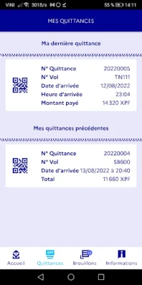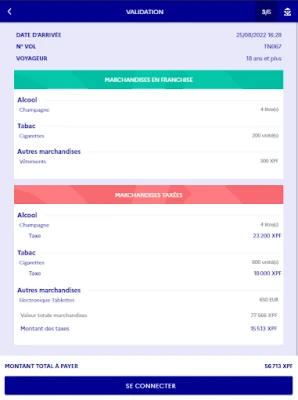 Les voyageurs peuvent payer les droits et taxes au plus tôt 48 heures avant leur arrivée en Polynésie. Une fois le paiement effectué les voyageurs sont informés par courrier électronique et peuvent télécharger le reçu à partir de l'application JE DECLARE.
