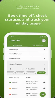 With the ShopWorks Self Service Portal App you can keep on top of your working schedule, manage your holiday requests and ensure your worked shifts have been approved by your manager and lots more: