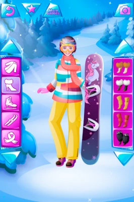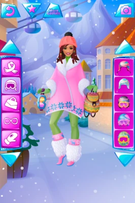 Winter season, snow and cold don't mean you have to stay at home. For the fashionista girls in our new winter dressup game the cold months are a great opportunity to buy new winter outfits and go to an ultra-modern mountain ski resort for the Christmas holidays.